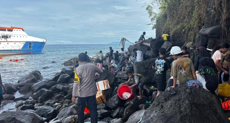 Personel Polsek Pulau Makian Bantu Evakuasi Penumpang Kapal K.M Intim Teratai