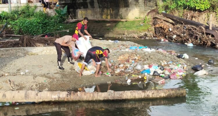 Dukung Program Jumat Asri, Polsek Obi Turut Turun Bersihkan Sampah