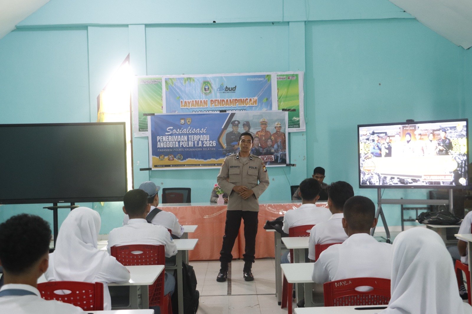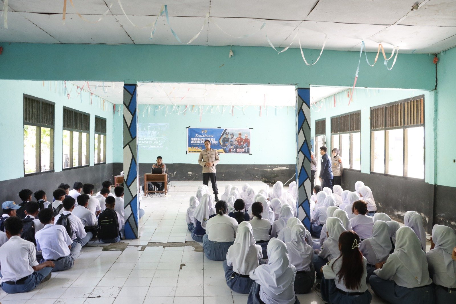 Sosialisasi dipimpin oleh Ketua Tim Aipda Ariyanto Soamole (Ps. Paur Subbagdalpers Bag SDM Polres Halmahera Selatan) bersama personel Bag SDM lainnya. Dalam pemaparannya, tim menjelaskan secara rinci mengenai jalur penerimaan Polri, persyaratan administrasi, kesehatan, akademik, serta tahapan seleksi yang harus dilalui oleh para calon peserta.