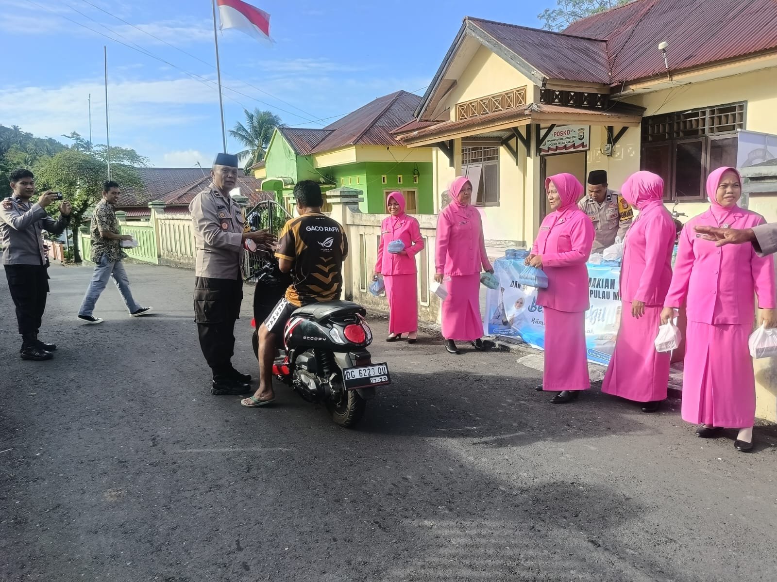 Sebanyak 75 paket Takjil berhasil dibagikan langsung kepada masyarakat yang melintas di depan Mako Polsek Pulau Makian, yang terletak di Desa Gorup, Kec. Pulau Makian, Kab. Halsel.
