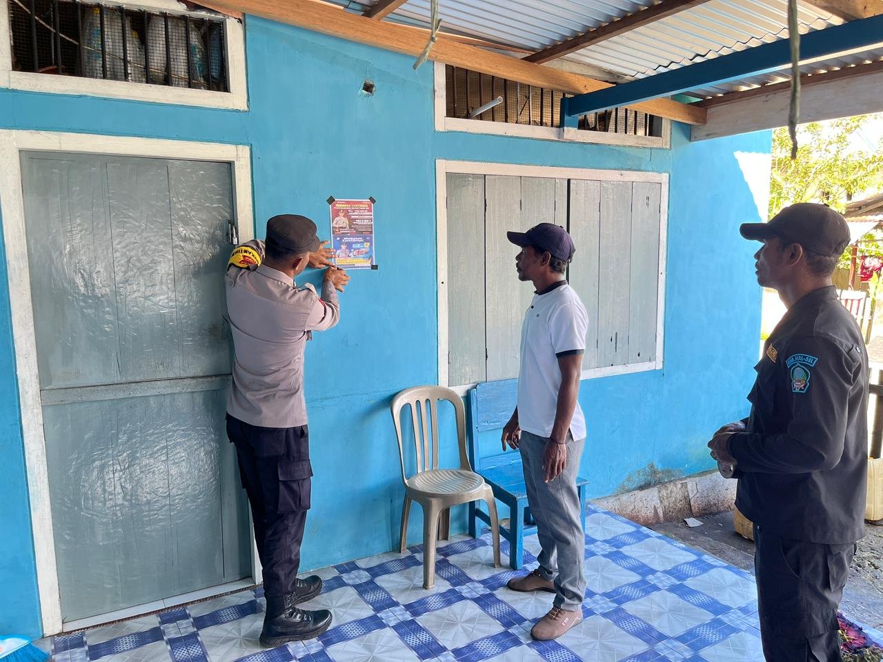 Melalui sebarang Pamflet, Bhabinkamtibmas Desa Loleojaya, Kec. Kasiruta Timur, Kab. Halsel, mensosialisasikan pasal 274 KUHP terkait Pesta tanpa Izin dan Pasal 316 KUHP terkait Menkonsumsi minuman keras (Mabuk) di tempat umum.