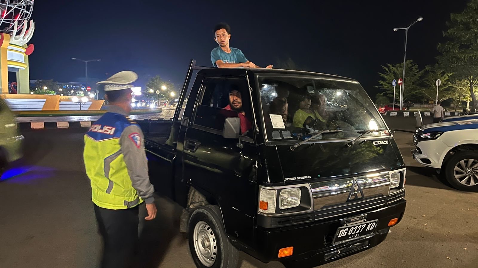 Dalam pelaksanaannya, petugas memberikan edukasi langsung kepada para pengemudi mengenai larangan penggunaan kendaraan bak terbuka untuk mengangkut orang karena berisiko tinggi terhadap keselamatan.
