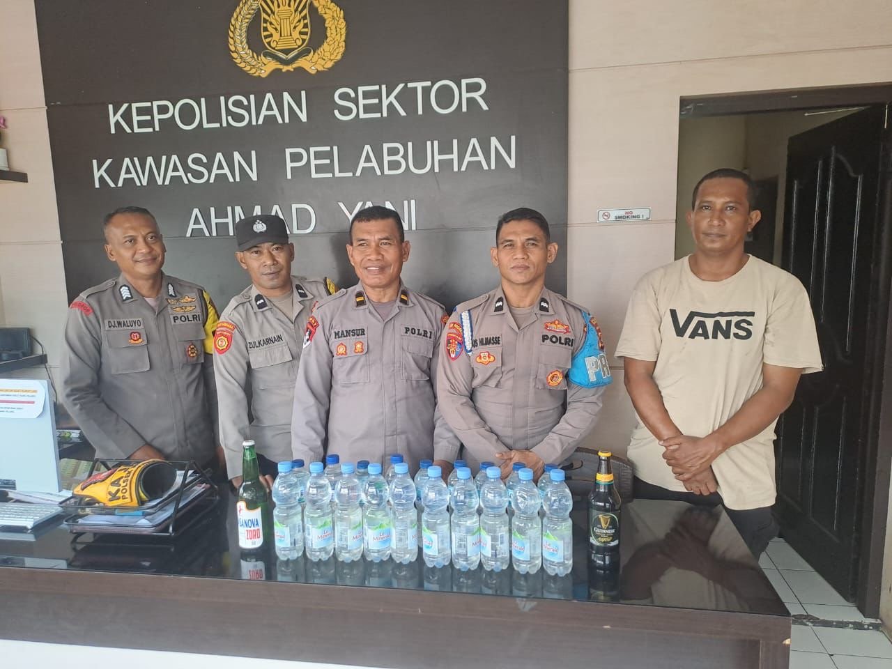 Personel Polsek Kawasan Pelabuhan Ahmad Yani, Polres Ternate, berhasil mengamankan puluhan botol minuman keras (miras) dalam kegiatan razia yang dilaksanakan di atas Kapal KM Al Sudais 21, Selasa (10/3) kemarin. Kapal tersebut baru tiba dari Pelabuhan Manado dan bersandar di Pelabuhan Ahmad Yani, Ternate.