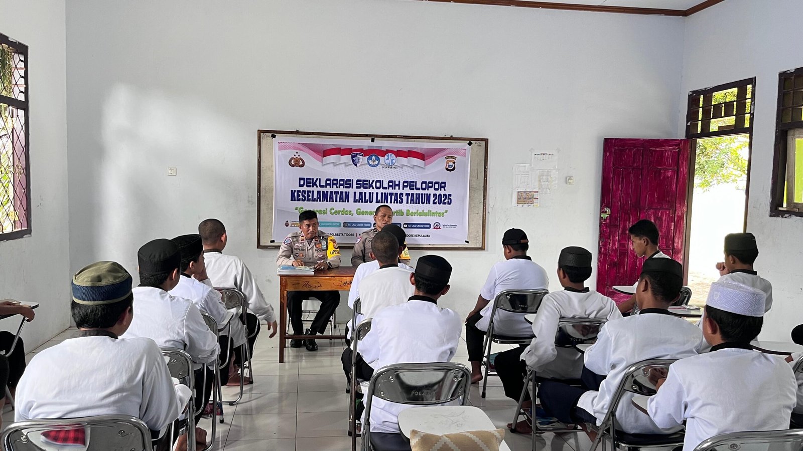 HUMAS POLDA MALUT – Satuan Lalu Lintas Polresta Tidore menggelar sosialisasi Deklarasi Sekolah Pelopor Keselamatan Lalu Lintas Tahun 2025 di Pondok Pesantren Ali Bin Abi Tholib, Selasa (25/11/2025). Kegiatan ini mengusung tema “Generasi Cerdas, Generasi Tertib Berlalu Lintas.”