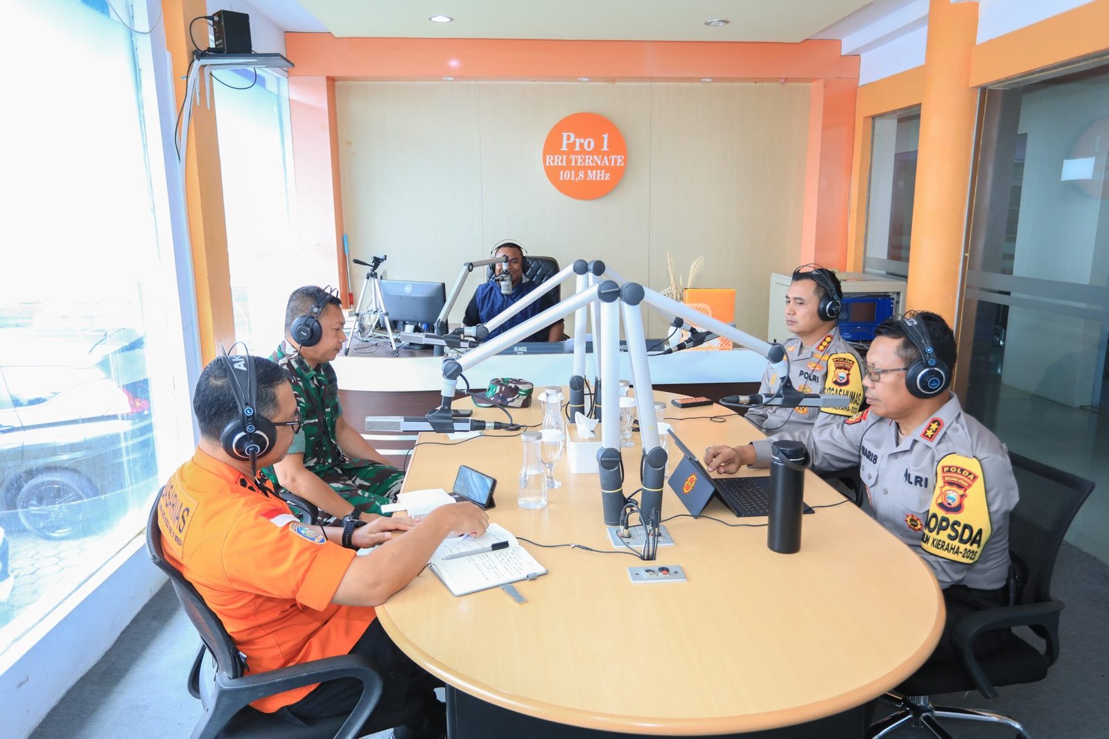 Kegiatan yang berlangsung di Studio Pro 1 RRI Ternate itu turut dihadiri sejumlah pemangku kepentingan, antara lain Karo Ops dan kabidhumas Polda Malut, Kepala Kantor Basarnas Kota Ternate, Kasi Ops Korem 152/Babullah, serta Kepala RRI Ternate.