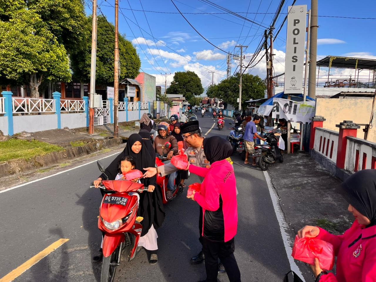 Menjelang waktu berbuka puasa, suasana di depan Mapolsek Pulau Ternate, Kelurahan Jambula, Kecamatan Pulau Ternate, Senin (3/3) kemarin, mendadak berubah menjadi lebih hangat dan penuh keakraban. Personel Kepolisian Sektor (Polsek) Pulau Ternate bersama Ibu Bhayangkari Ranting setempat menggelar aksi sosial dengan membagikan puluhan paket takjil kepada para pengendara roda dua maupun roda empat yang melintas.