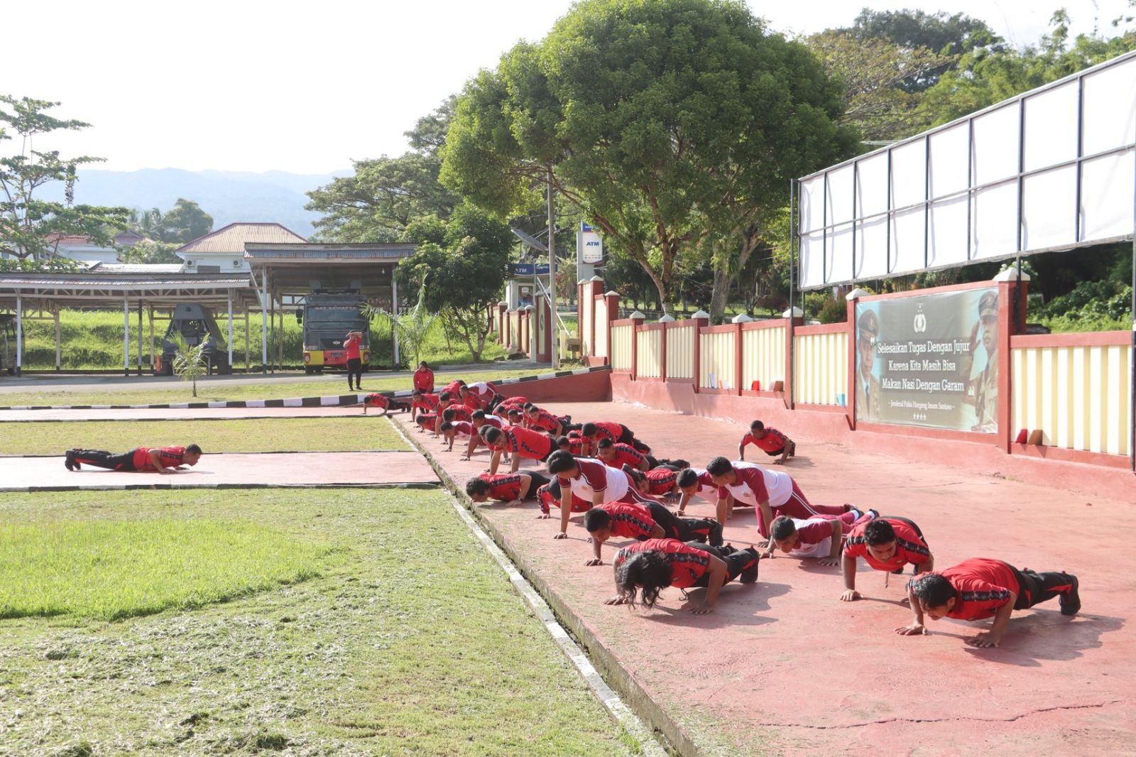 Setelah kembali ke Mapolres, kegiatan dilanjutkan dengan senam peregangan dan push-up bersama di halaman Mapolres. Suasana penuh semangat dan kekeluargaan tampak mewarnai kegiatan tersebut, mencerminkan soliditas tinggi di antara para personel.