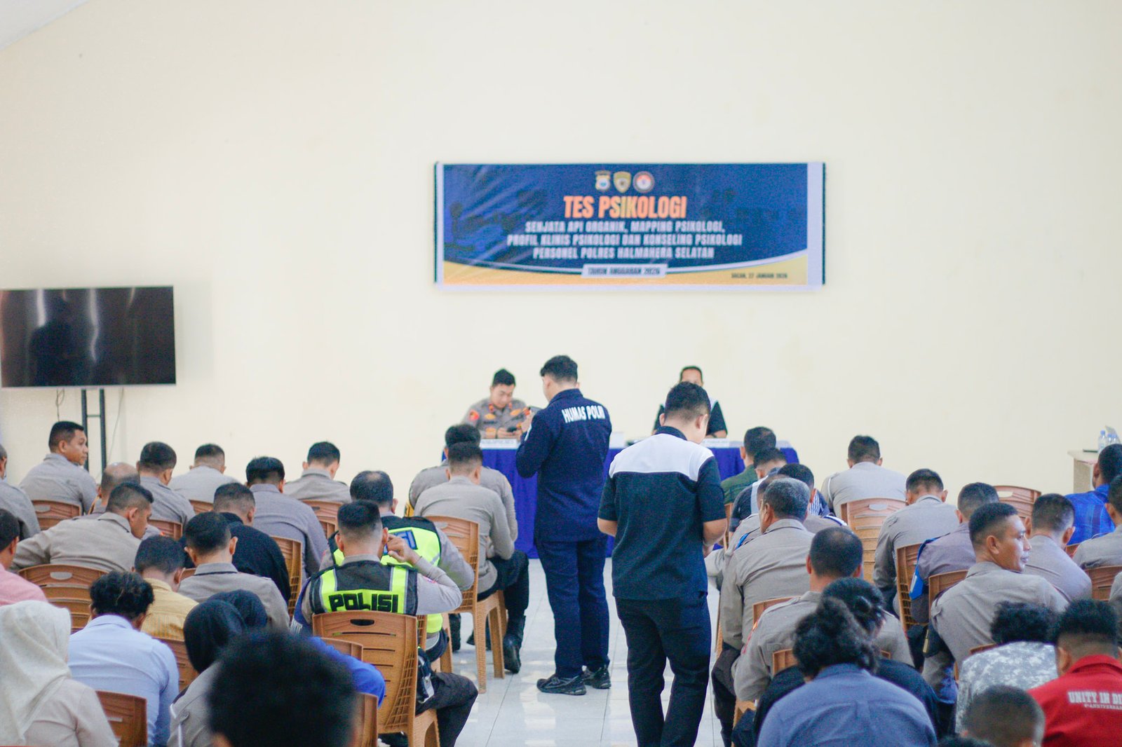Polres Halmahera Selatan melaksanakan kegiatan pemeriksaan tes psikologi bagi seluruh personel sebagai bagian dari upaya pembinaan dan peningkatan profesionalisme dalam pelaksanaan tugas kepolisian. Kegiatan ini dilaksanakan oleh Tim Psikologi Bag SDM Polda Maluku Utara dan dipimpin langsung oleh AKP Rendy Ferdian Anggriawan, S.Psi., M.Psi., Psikolog, bersama tim.Selasa (27/01/26)