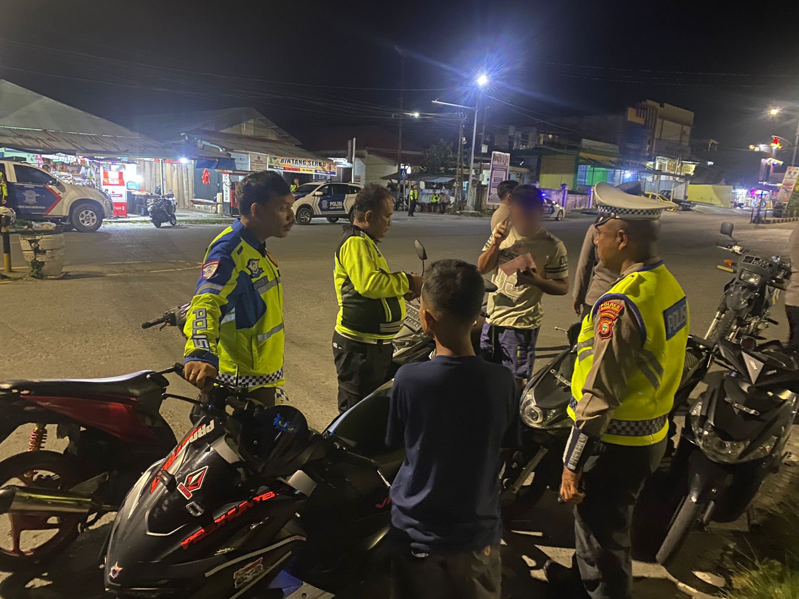 Kasat Lantas Polres Halsel IPTU Irfan Muzaffar Sondani, S.Tr.K Bersama personel Sat Lantas yang turut hadir dalam kegiatan tersebut berhasil mengamankan sejumah kendaraan dengan Knalpot brong yang mengganggu ketertiban Masyarakat di Waktu istirahat, sejumlah pelanggar lain yang mengemudi tanpa kelengkapan kendaraan serta melewati batas kecepatan juga ikut diamankan.
