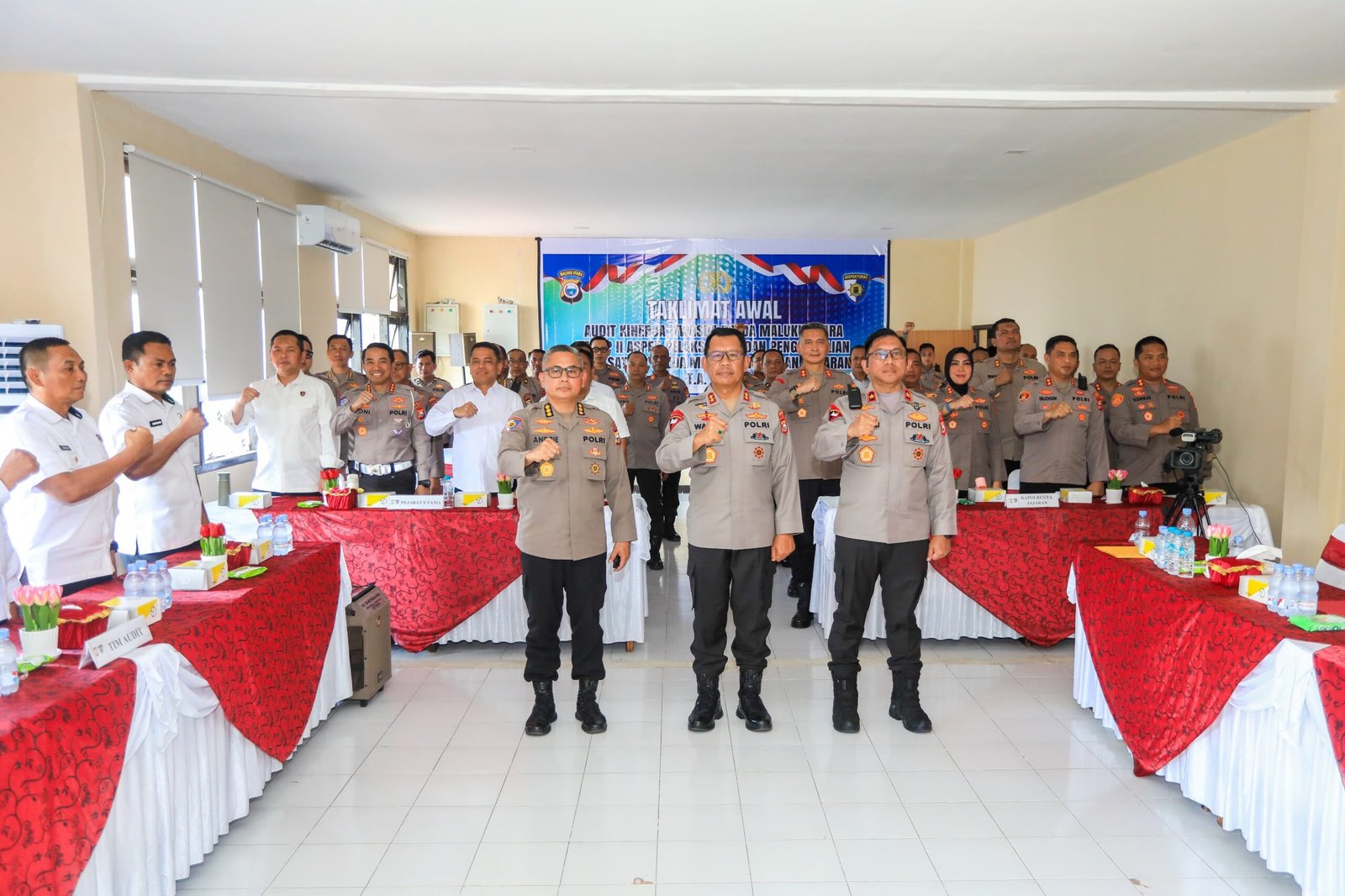 Humas Polri – Kepala Kepolisian Daerah Maluku Utara, Irjen Pol. Drs. Waris Agono, M.Si, menghadiri sekaligus memberikan sambutan pada kegiatan Taklimat Awal Audit Kinerja Itwasda Polda Maluku Utara Tahap II Aspek Pelaksanaan dan Pengendalian Tahun Anggaran 2025 terhadap Satker dan Satwil jajaran Polda Maluku Utara, Sofifi, Senin (3/11/2025).
