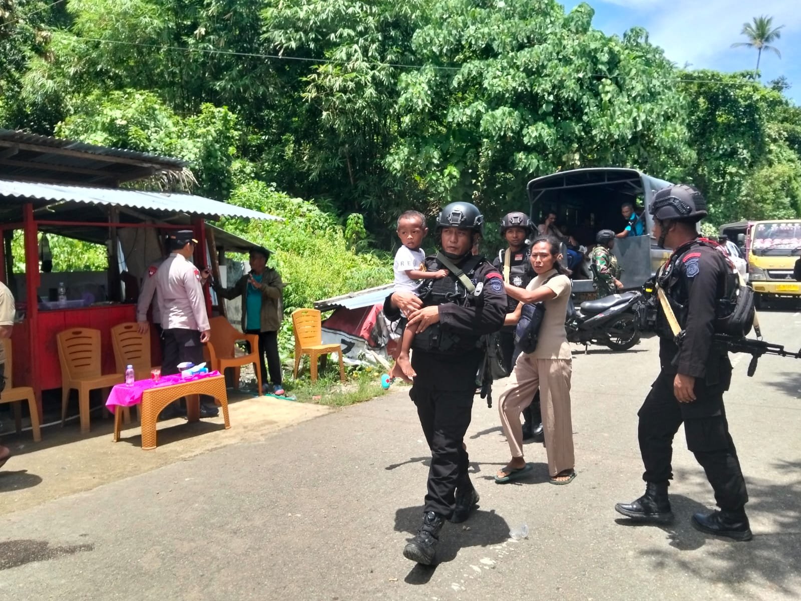 Jajaran Kepolisian Daerah Maluku Utara bergerak cepat mengevakuasi warga Desa Sibenpopo, Kecamatan Patani Barat, Halmahera Tengah, yang sebelumnya mengungsi akibat bentrokan antar kampung.