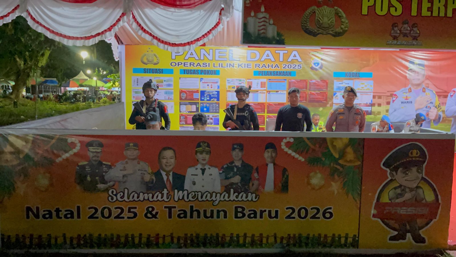 Pada malam pertama pelaksanaan Operasi Lilin Kie Raha 2025, personel gabungan Polda Maluku Utara melaksanakan kegiatan penjagaan pos dan patroli malam di seputaran Kota Sofifi, Sabtu (20/12).
