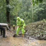Gotong Royong Polisi Bersama TNI dan BPBD Tangani Longsor di Pacet Mojokerto
