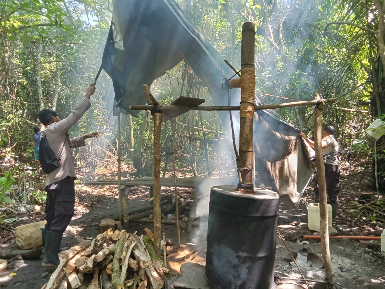 Saat petugas tiba di lokasi, pemilik tempat penyulingan tidak berada di tempat dan diduga telah melarikan diri. Guna mencegah aktivitas serupa kembali terjadi, tim kemudian mengambil tindakan tegas dengan memusnahkan lokasi penyulingan, termasuk bahan baku saguer sebanyak 300 liter yang sedang dimasak di dalam drum.