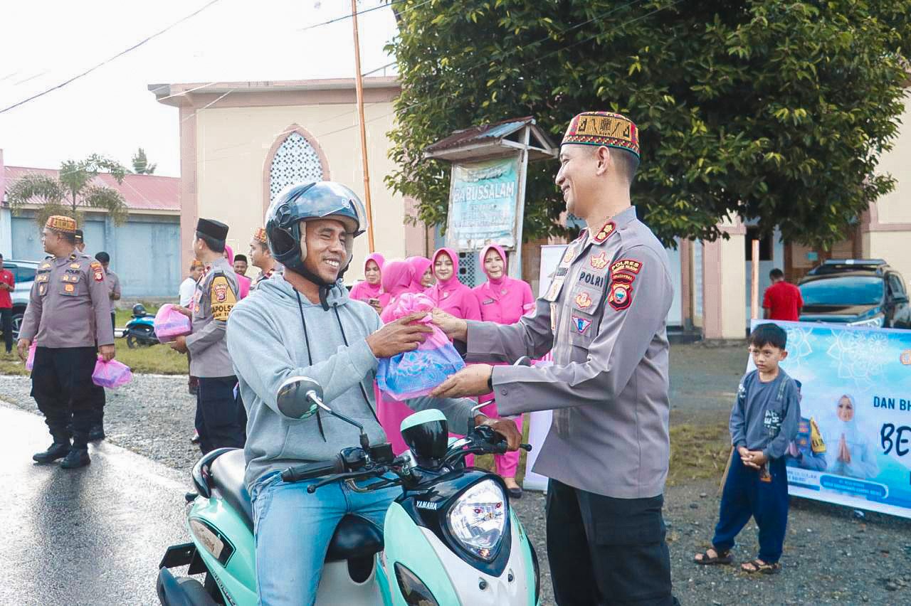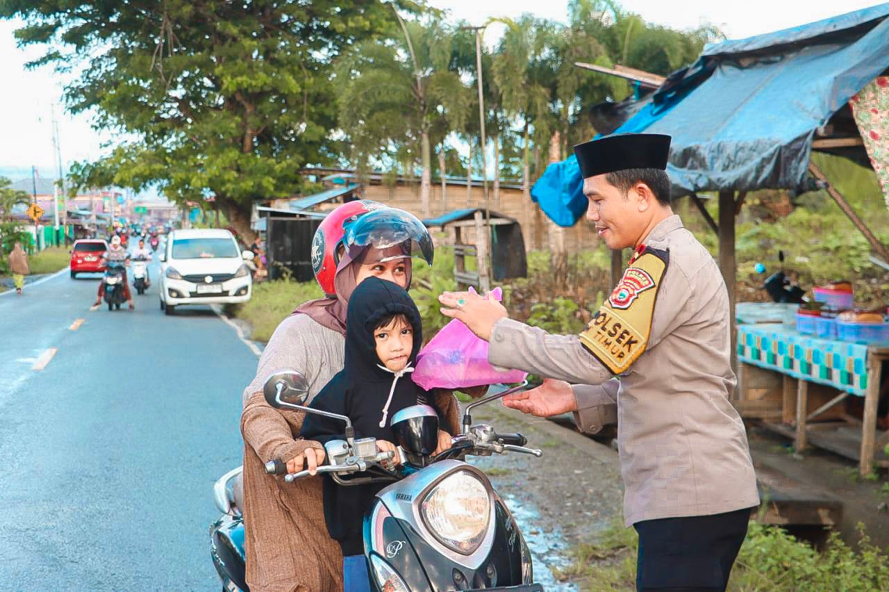 Sebanyak 100 paket takjil dibagikan kepada pengendara roda dua maupun roda empat yang melintas di lokasi kegiatan. Pembagian dilakukan dengan tertib dan tetap mengutamakan keselamatan arus lalu lintas. Kehadiran personel kepolisian di tengah masyarakat pun mendapat respons positif dan antusias dari warga yang merasa terbantu dengan adanya takjil gratis tersebut.