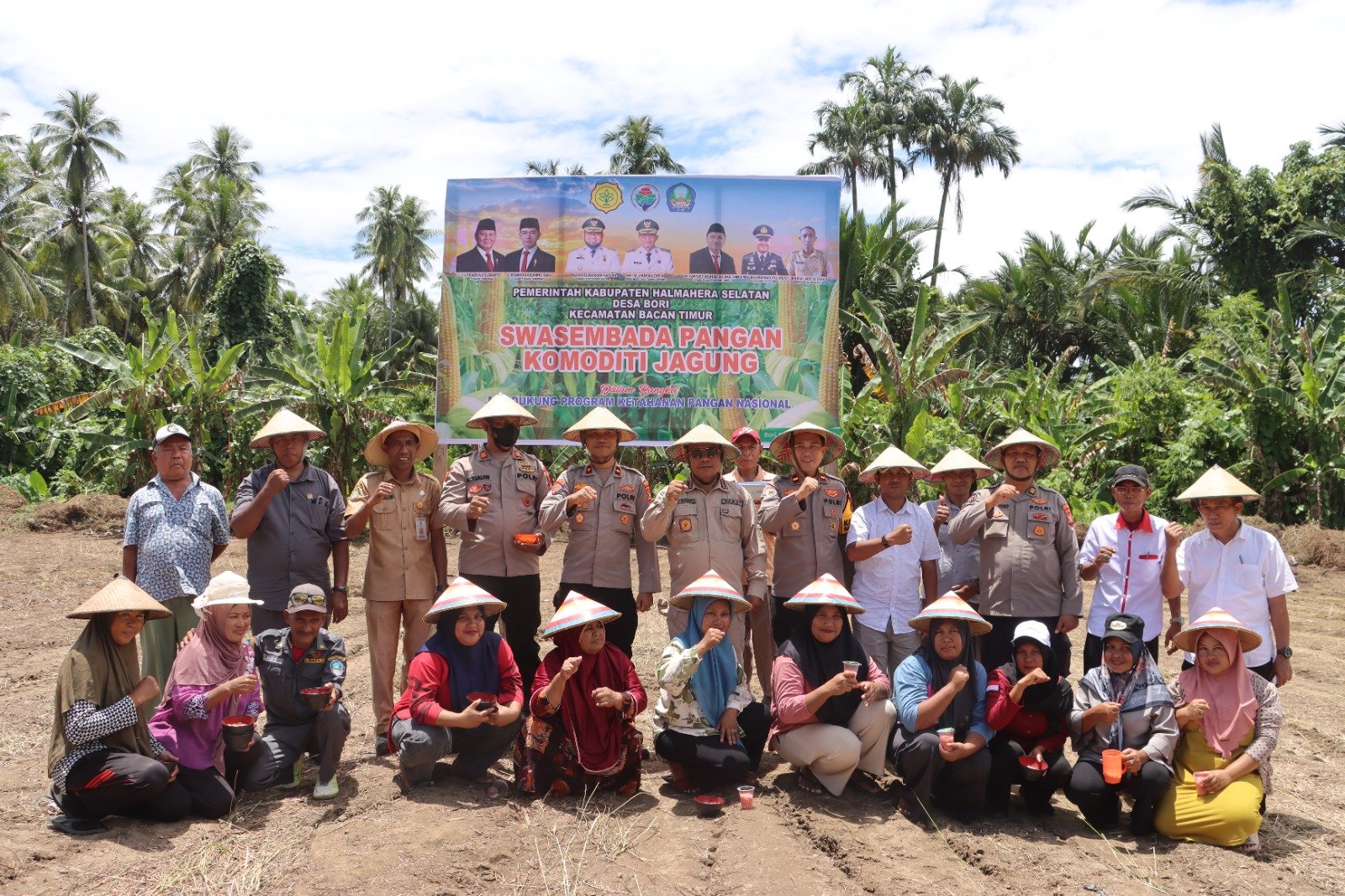 Humas Polres Halsel – Dalam upaya mendukung program ketahanan pangan nasional, kegiatan penanaman jagung serentak digelar di area perkebunan Desa Bori, Kecamatan Bacan Timur, Kabupaten Halmahera Selatan, Senin (15/09/25).