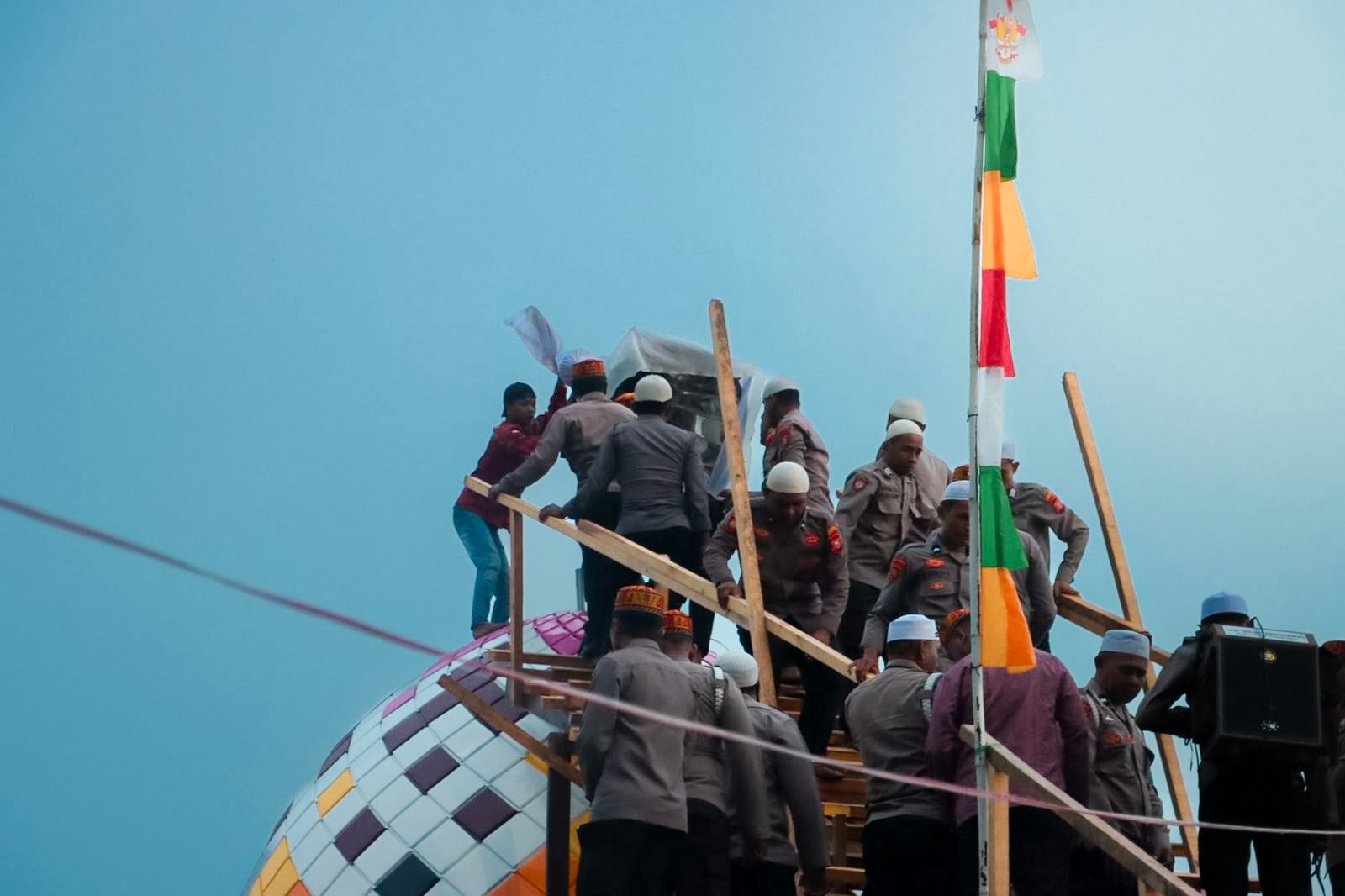 Setelah tawaf selesai, tiang alif kemudian dipasang secara resmi pada bangunan masjid yang sedang dikerjakan. Pemasangan ini menjadi tahap penting dalam pembangunan dan menunjukkan komitmen Polres Halsel dalam menyediakan sarana ibadah yang representatif atau tepat.