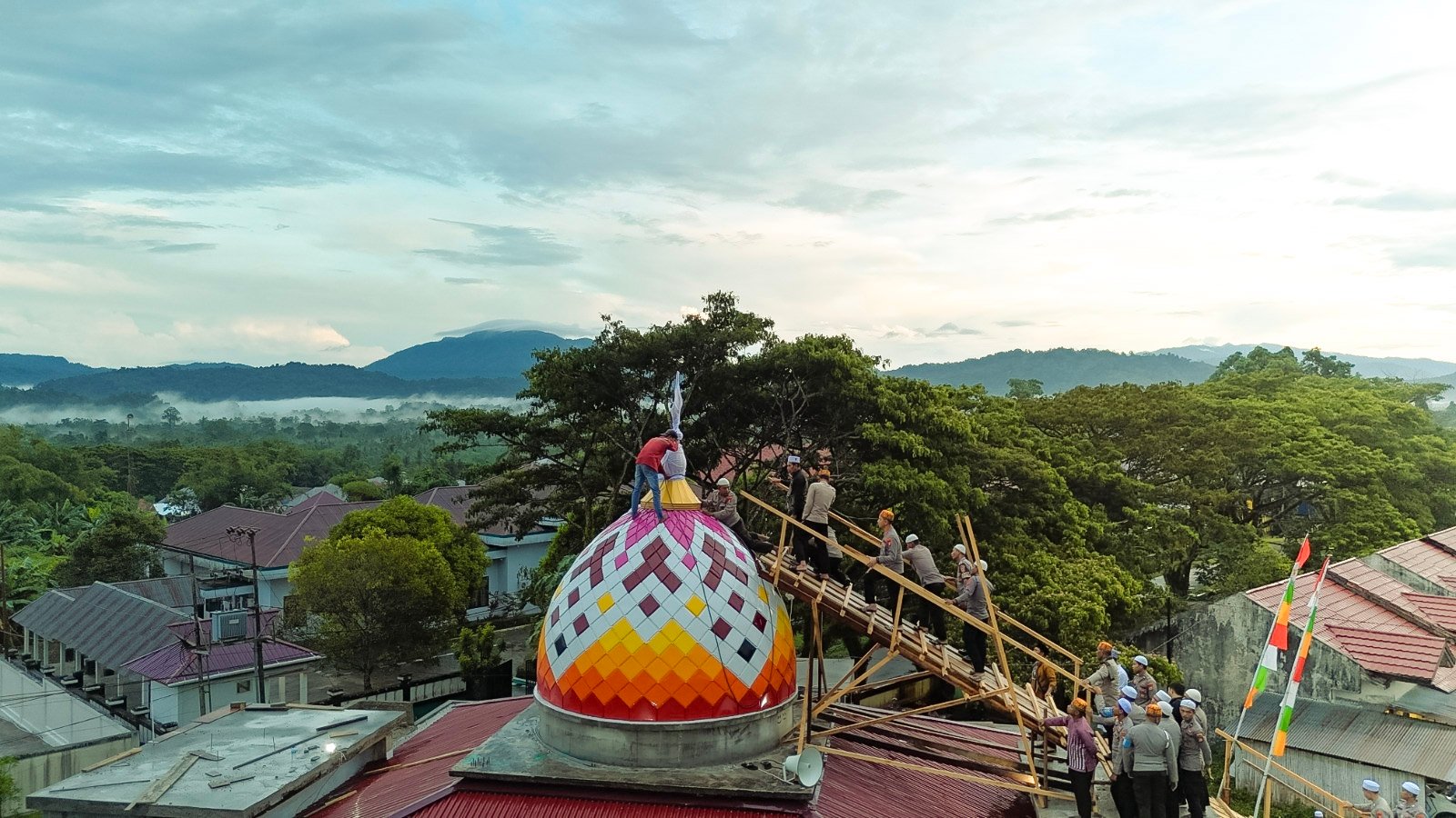 Nilai tradisi tersebut tampak dalam prosesi pemasangan tiang alif di Masjid Polres Halmahera Selatan pada pagi hari tadi yang berlangsung khidmat. Kegiatan dihadiri langsung oleh Kapolres Halmahera Selatan, AKBP Hendra Gunawan, S.H., S.I.K., M.M., Wakapolres Halsel Kompol Azis Ibrahim Muamar, S.H., M.Si. bersama PJU, perwira, personel Polres Halsel, serta tokoh agama.