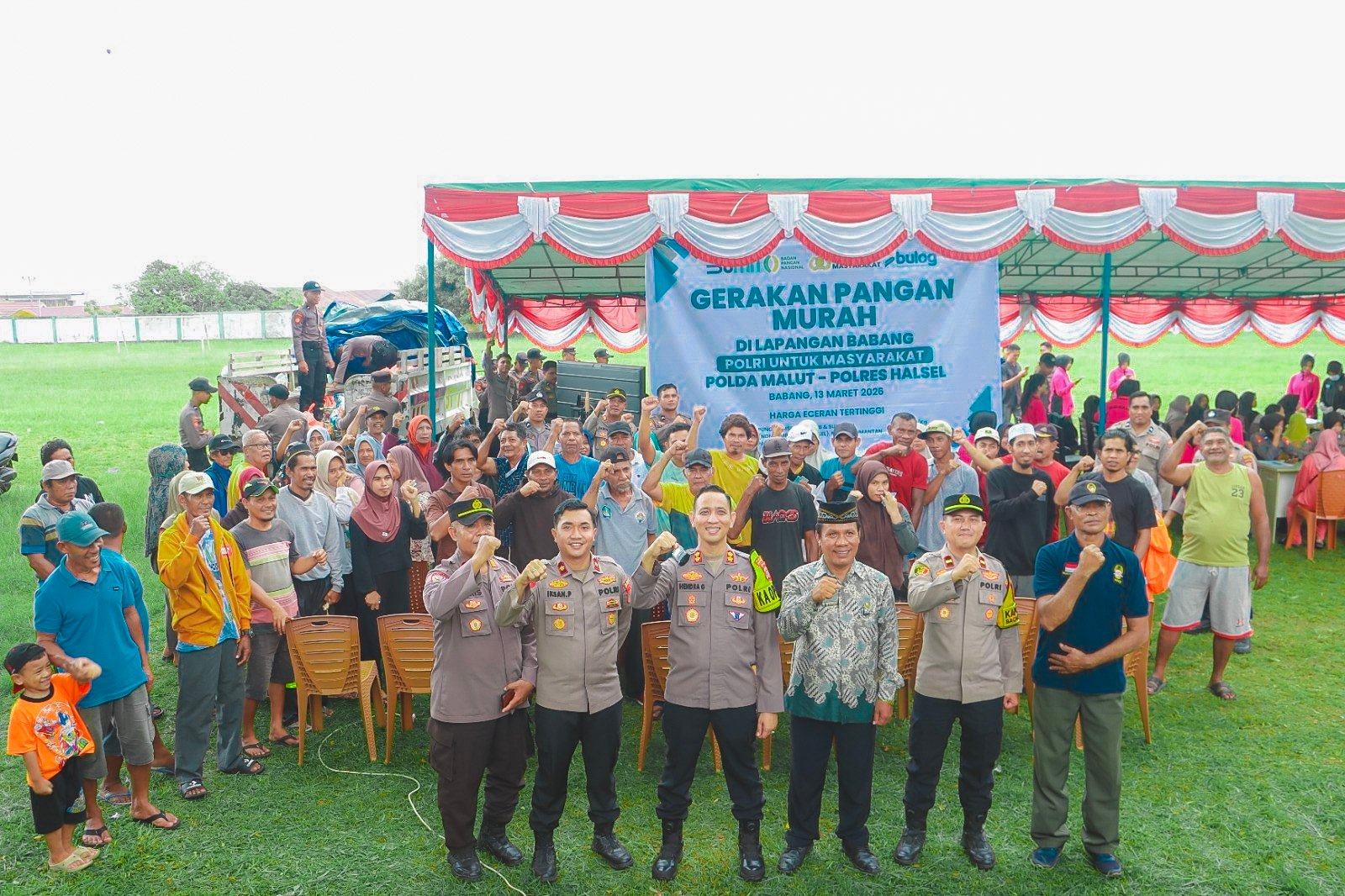 Humas Polres Halsel – Polres Halmahera Selatan menggelar kegiatan Gerakan Pangan Murah yang dipusatkan di Lapangan Sepak Bola Desa Babang, Kecamatan Bacan Timur, Kegiatan ini dilaksanakan sebagai bentuk kepedulian Polri dalam membantu masyarakat mendapatkan kebutuhan pokok dengan harga yang lebih terjangkau.Jumat (13/03/26)