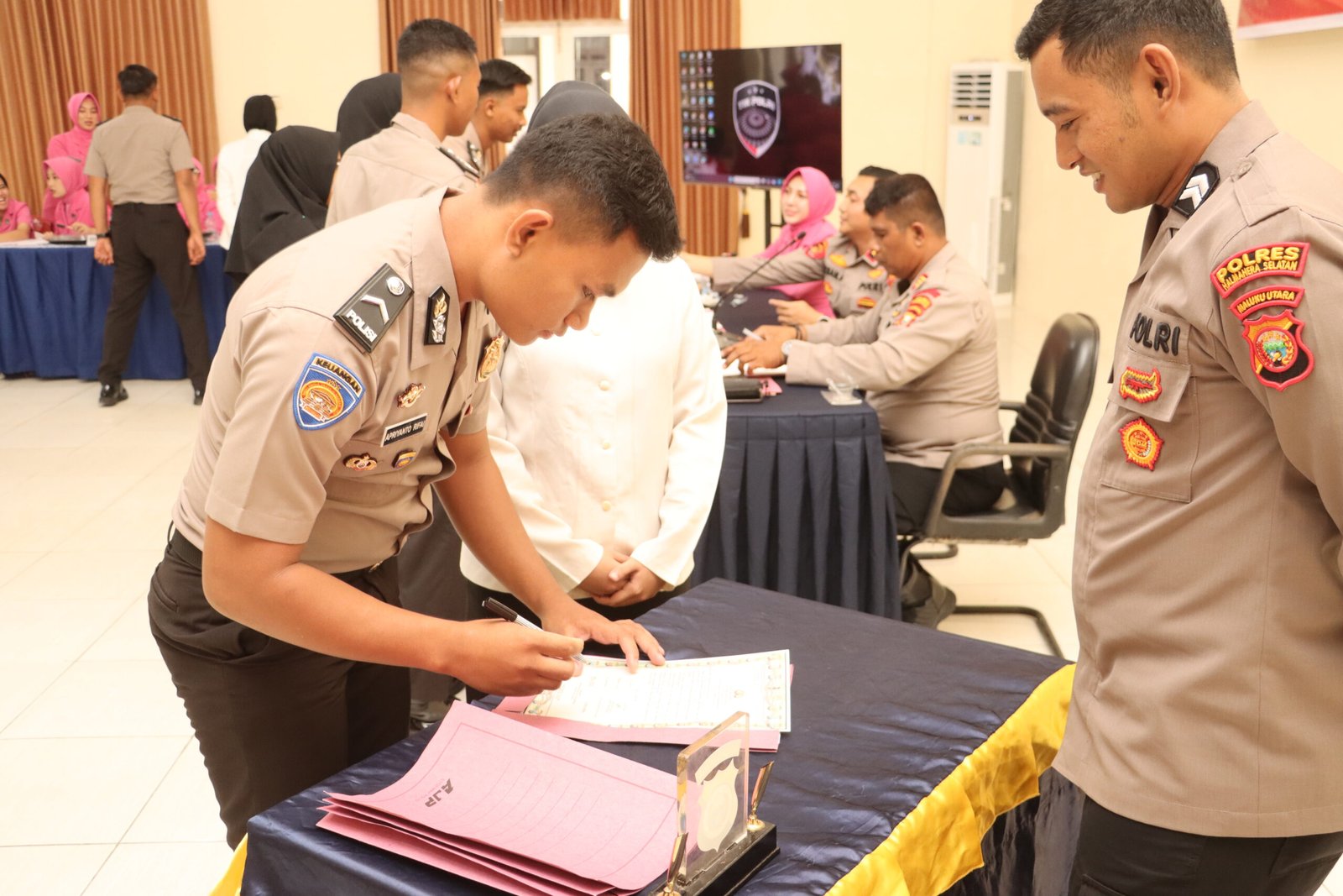 Sebagai penutup rangkaian kegiatan, para personel melakukan penandatanganan pakta integritas sebagai bentuk komitmen menjaga keharmonisan keluarga dan nama baik institusi Polri. Selain itu, pengurus Bhayangkari Cabang Halmahera Selatan turut memberikan pengenalan atribut Bhayangkari kepada calon istri personel sebagai bagian dari pembekalan awal sebelum resmi menjadi anggota Bhayangkari.