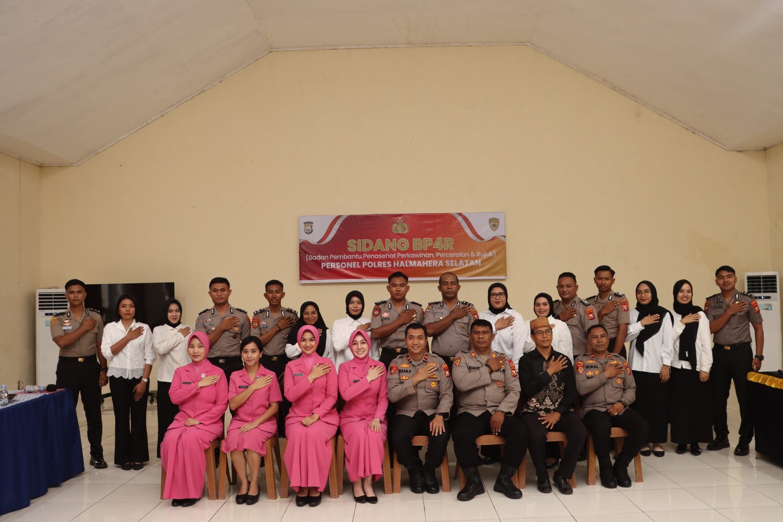 Adapun jumlah personel Polres Halmahera Selatan yang mengikuti Sidang BP4R kali ini sebanyak 8 personel beserta pasangannya. Dalam sidang tersebut, para peserta diberikan sejumlah pertanyaan terkait kesiapan mental, tanggung jawab, dan komitmen dalam kehidupan berumah tangga.
