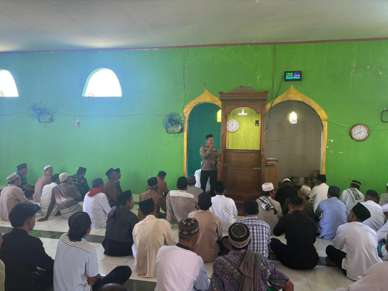 Humas Polres Halmahera Selatan – Dalam rangka menjaga stabilitas keamanan dan ketertiban masyarakat, Polsek Bacan Timur melaksanakan kegiatan penyampaian pesan-pesan kamtibmas kepada masyarakat usai pelaksanaan Shalat Jumat di Masjid Nurul Hasan, Desa Liaro, Kecamatan Bacan Timur Selatan, Jumat (27/03/2026).