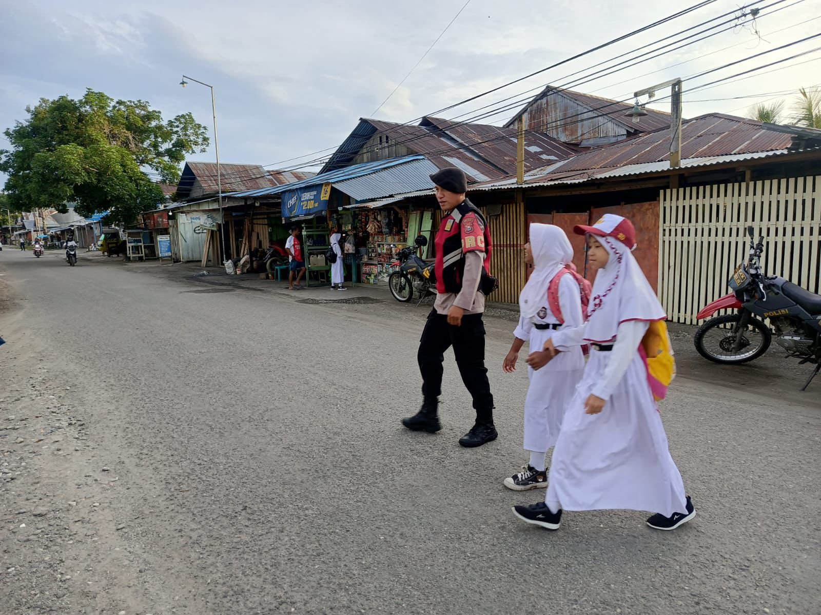 Kegiatan ini difokuskan pada pengamanan dan pengaturan aktivitas masyarakat di jam sibuk pagi hari.