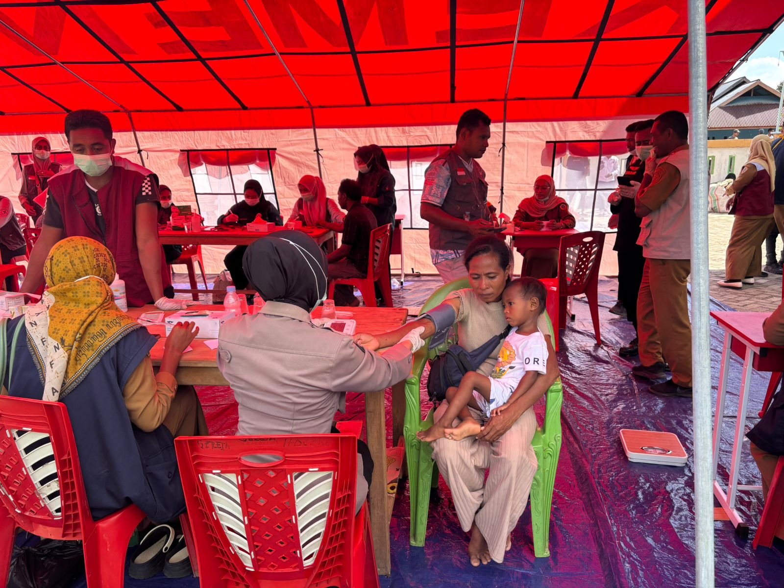 Kegiatan tersebut menyasar puluhan warga yang membutuhkan pelayanan kesehatan di tengah kondisi pengungsian. Dalam kegiatan ini, petugas melakukan pemeriksaan tanda-tanda vital (TTV), pemberian obat-obatan sesuai keluhan, serta observasi perkembangan kondisi kesehatan warga yang mengalami sakit.
