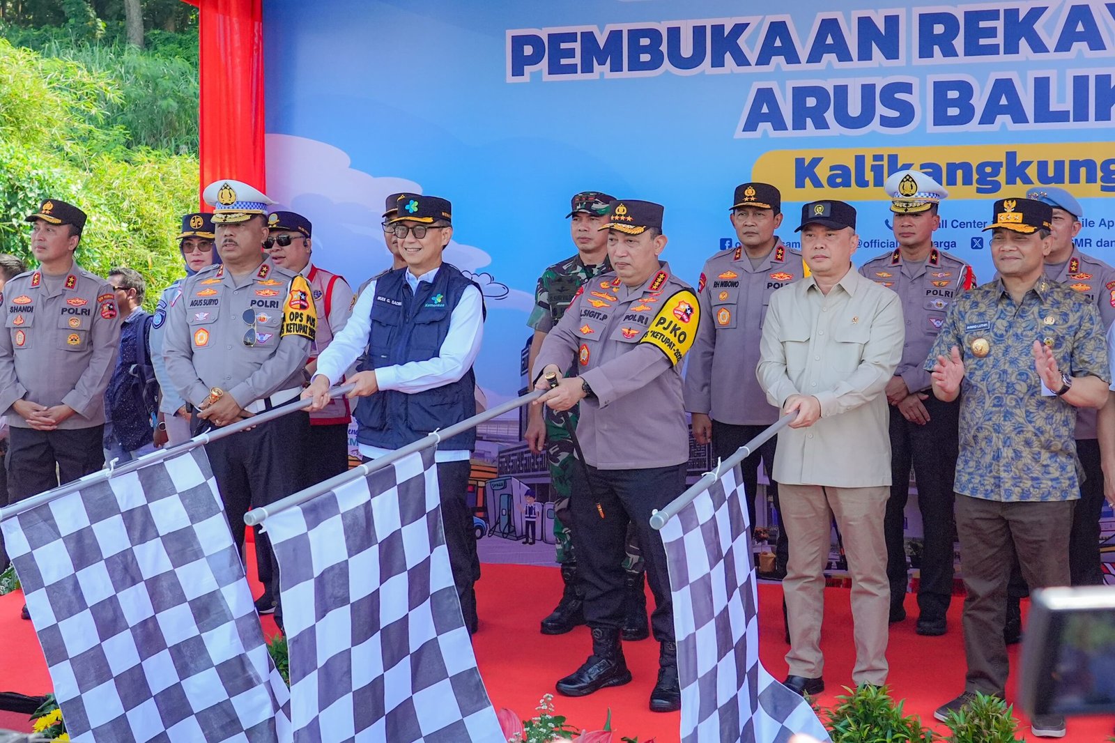 KORLANTAS POLRI, Kalikangkung – Kapolri Jenderal Listyo Sigit Prabowo menghadiri dan melepas Flag Off One Way Nasional Arus Balik di KM 414 Kalikangkung sampai KM 70, Minggu (6/4/2025). Sebelumnya, Korlantas Polri telah memprediksi puncak arus balik bakal terjadi pada hari ini.