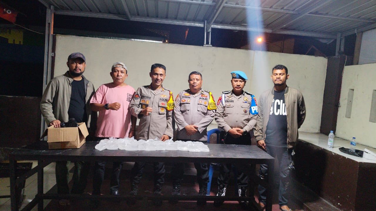 Personel Polsek Ternate Utara kembali menggagalkan peredaran minuman keras (miras) ilegal dengan menyita puluhan kantong miras jenis Cap Tikus dalam operasi patroli rutin, Sabtu (1/11) malam. Berkas barang bukti berhasil diamankan di sekitar pangkalan Pasar Dufa-Dufa, lokasi yang menjadi perhatian khusus dalam pengawasan kamtibmas.