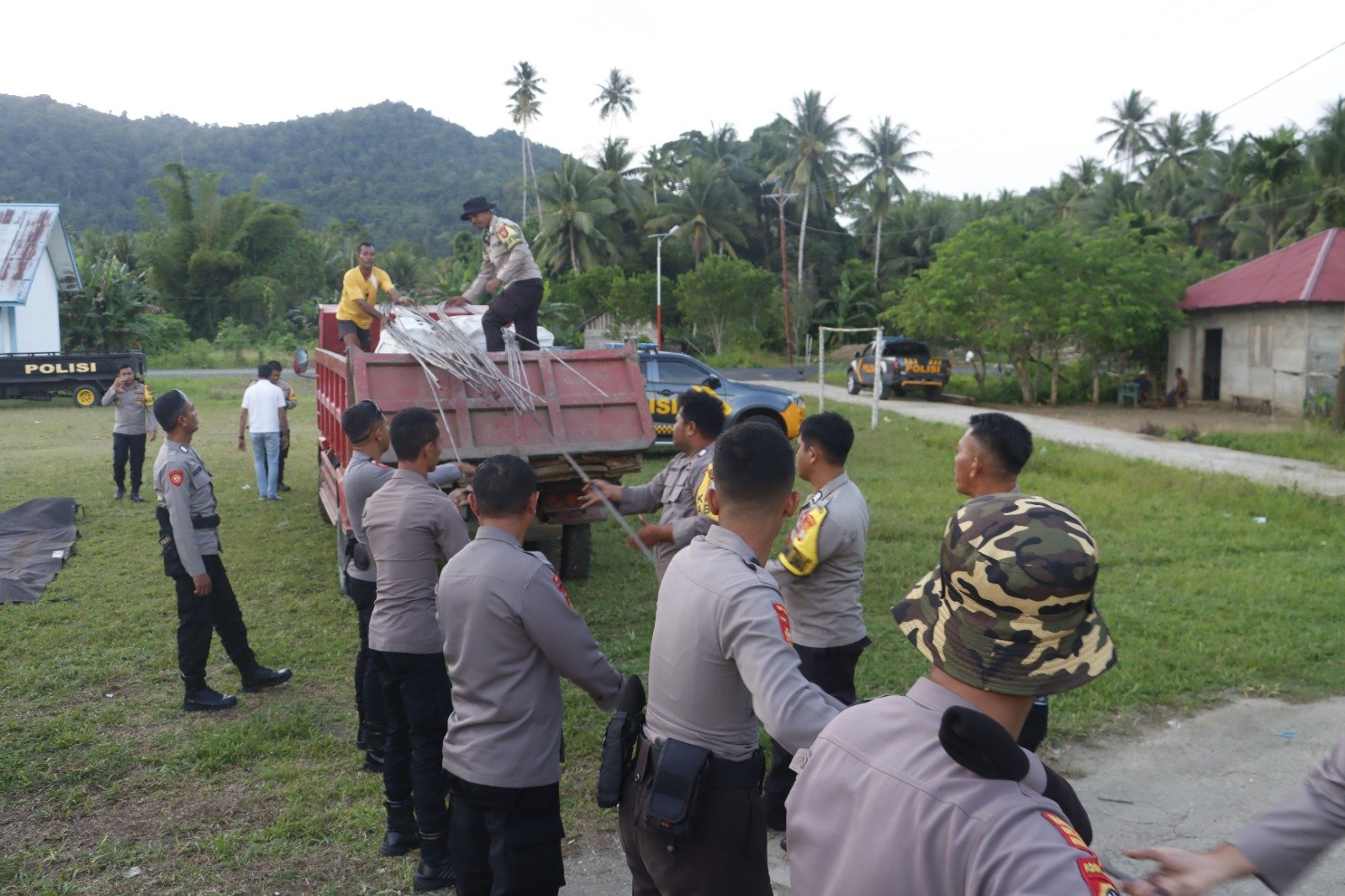 Pelepasan Bahan material dipimpin langsung Wakapolres Halsel, Kompol Iksan Prananto, S.I.K,. M.H., Pembangunan didistribusikan langsung oleh Polres Halsel melalui Jalur darat. Bahan logistik berupa semen, besi, dan kayu berhasil disalurkan dan diterima langsung oleh pemerintah Desa setempat.