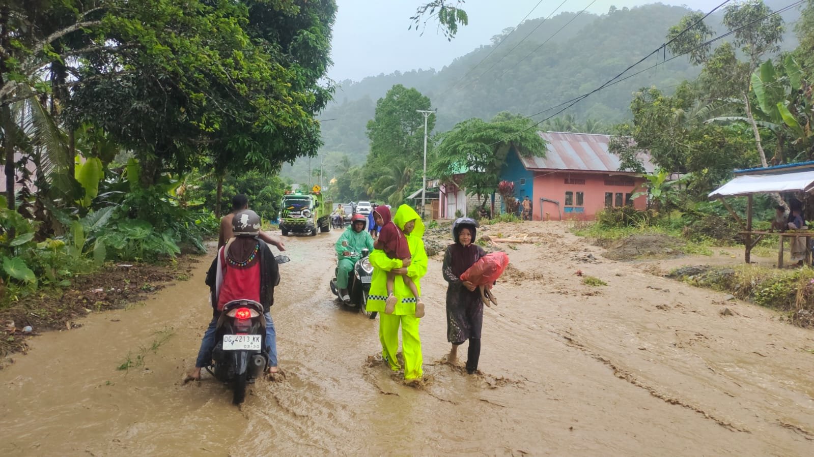 Selain itu, personel Sat Lantas juga melakukan pengaturan arus lalu lintas agar kendaraan tidak terjebak banjir serta membantu masyarakat yang rentan seperti anak-anak, ibu-ibu, dan lansia saat melintas di titik banjir. Hal ini dilakukan guna mengurangi risiko kecelakaan dan memastikan keselamatan warga.