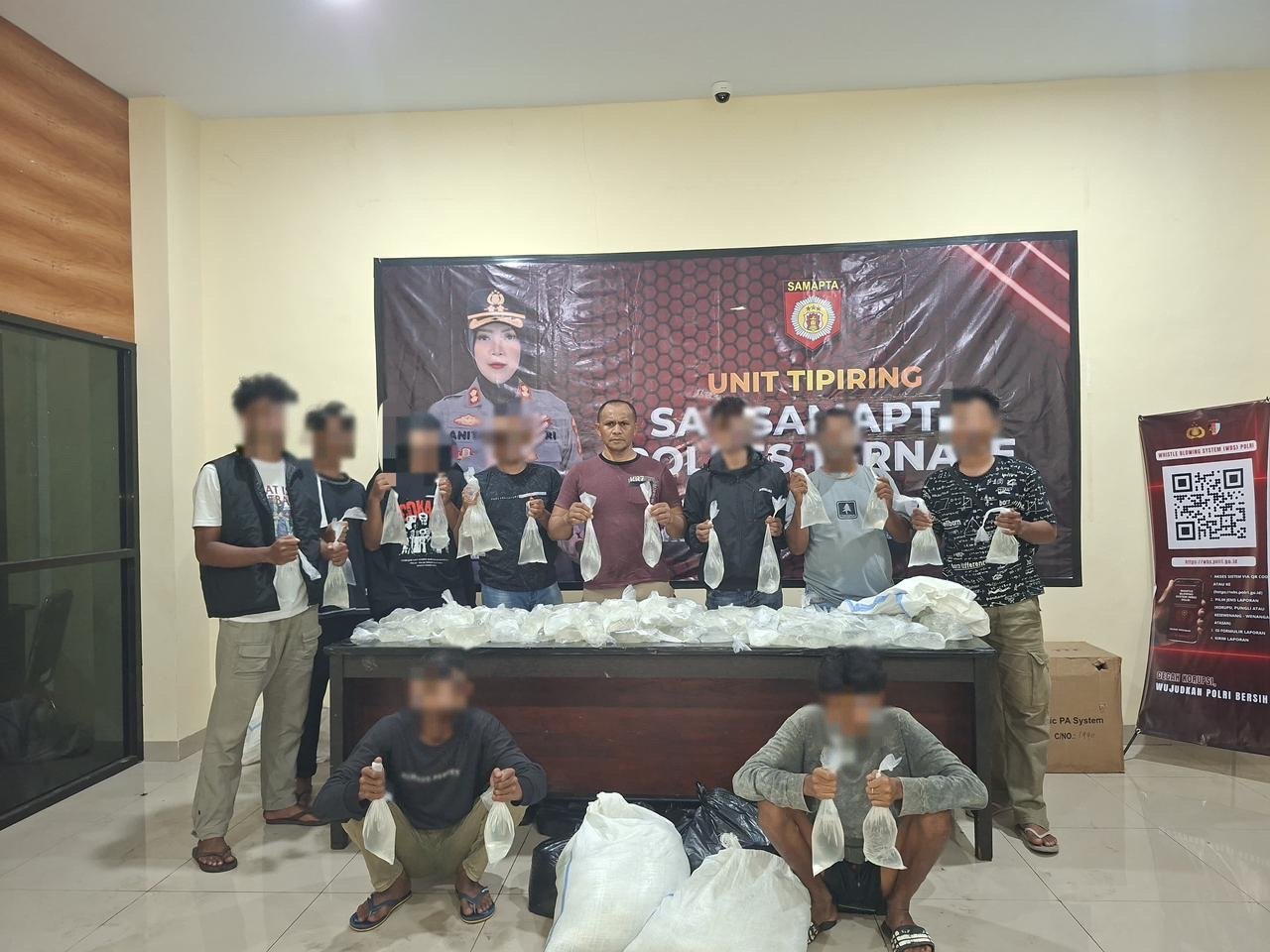 Setelah berhasil mengamankan situasi dan mengumpulkan barang sitaan, pada pukul 22.00 WIT, kedua terduga pelaku beserta seluruh barang bukti langsung digelandang ke Mapolres Ternate untuk menjalani proses pemeriksaan dan hukum lebih lanjut.
