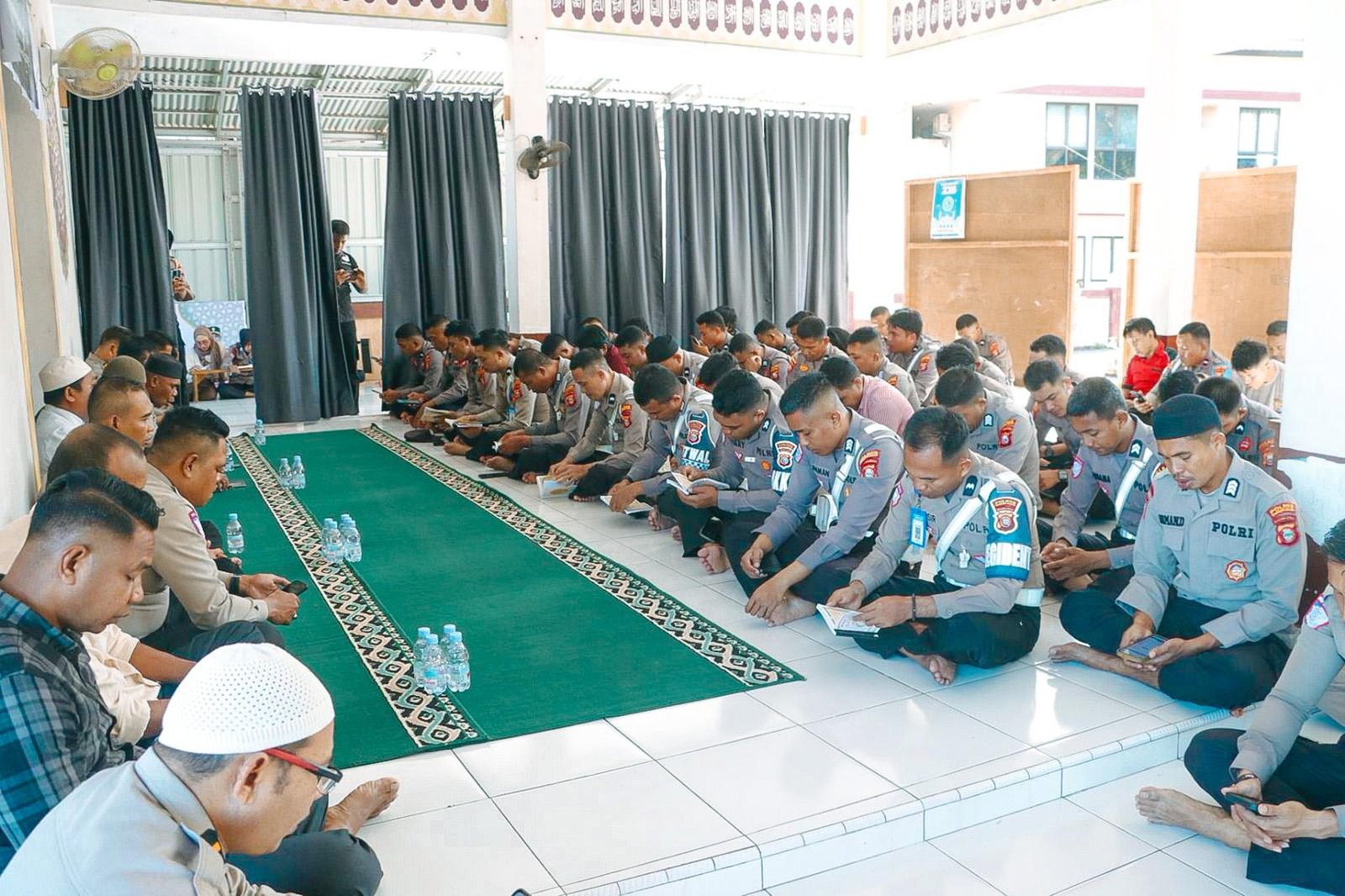 Acara berlangsung khidmat dengan dihadiri Wakapolres Halsel Kompol Azis Ibrahim Muamar, S.H., M.Si., para pejabat utama (PJU), perwira, serta seluruh personel Polres Halmahera Selatan. Kehadiran Ustadz Abdul Hadi, S.Pd. turut menambah nilai spiritual dalam kegiatan ini, dengan menyampaikan tausiyah yang menekankan pentingnya memperkuat iman, doa, dan keikhlasan dalam menjalankan tugas pengabdian kepada masyarakat.