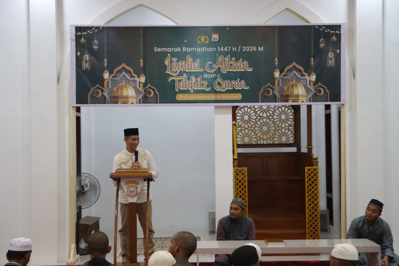 Humas Polres Halsel – Dalam rangka memeriahkan bulan suci Ramadan 1447 Hijriah, Polres Halmahera Selatan menggelar kegiatan Semarak Ramadan Kapolres Cup 1447 H dengan membuka perlombaan azan dan tahfidz Al-Qur’an bagi pelajar tingkat SD hingga SMP. Kegiatan ini bertujuan untuk menumbuhkan kecintaan generasi muda terhadap Al-Qur’an sekaligus menjadi wadah pembinaan karakter religius bagi anak-anak di Kabupaten Halmahera Selatan.Jumat (13/03/26)