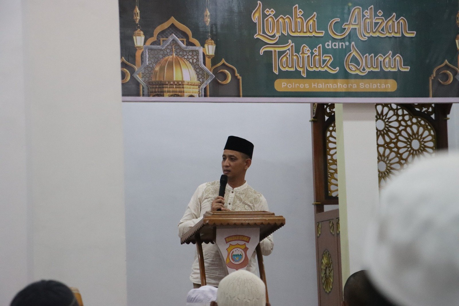 Kapolres Halmahera Selatan AKBP Hendra Gunawan dalam sambutannya menyampaikan bahwa kegiatan lomba azan dan tahfidz Al-Qur’an ini merupakan bentuk kepedulian Polres Halsel dalam membina generasi muda agar semakin mencintai Al-Qur’an serta mengisi bulan Ramadan dengan kegiatan yang positif dan bermanfaat.