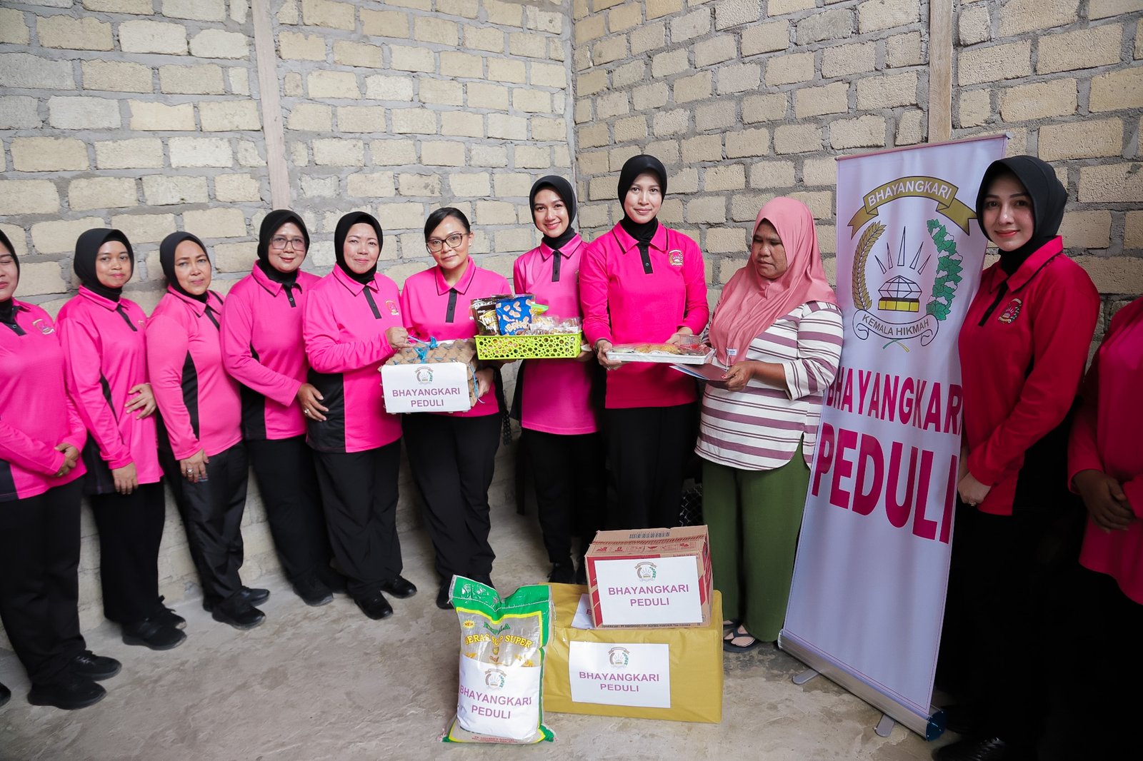 Kehadiran rombongan Bhayangkari disambut hangat oleh keluarga dan masyarakat sekitar. Suasana haru dan penuh kehangatan terlihat saat penyerahan bantuan berlangsung, menandai adanya rasa kebersamaan dan solidaritas sosial yang kuat antara Bhayangkari dan masyarakat.