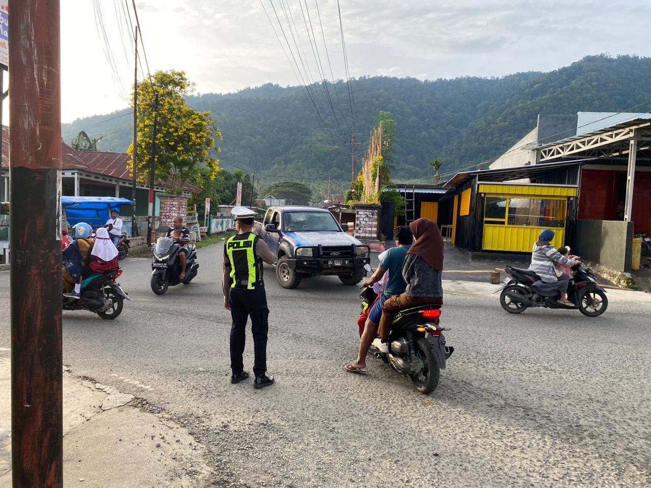 Pelaksanaan Strong Point dimulai sejak pukul 06.30 WIT dengan fokus utama pada pengaturan arus lalu lintas serta membantu penyeberangan anak sekolah dan warga yang memulai aktivitas. Memasuki pukul 07.00 WIT, arus kendaraan roda dua maupun roda empat terpantau meningkat signifikan, sehingga kehadiran personel Sat Samapta dan Sat Lantas di lapangan sangat membantu mencegah kemacetan serta meminimalisir potensi kecelakaan lalu lintas.